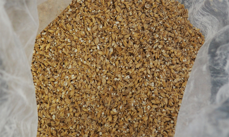 Wir benutzen geschrotetes Bohemian Pilsner Malz. Ungeschrotetes Malz wäre länger haltbar. Da wir aber (noch) keine Malzmühle haben,